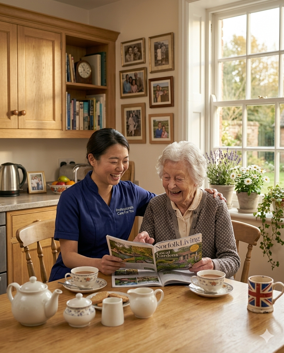 Research consistently shows that loneliness and social isolation are as damaging to health as smoking fifteen cigarettes a day. For older adults living alone across Norfolk — particularly those whose family members live at a distance — meaningful social contact is not a luxury. It is a fundamental part of staying well.